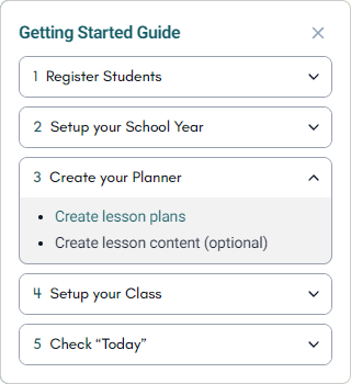 - Go: Click "Planner" in the main menu or the "Create lesson plans" link in the guide.